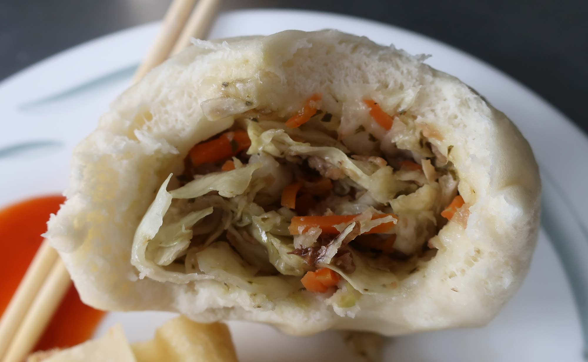 The bun was the highlight; it was super fresh and fluffy, with a really tasty cabbage and carrot filling that had an almost smoky flavour.