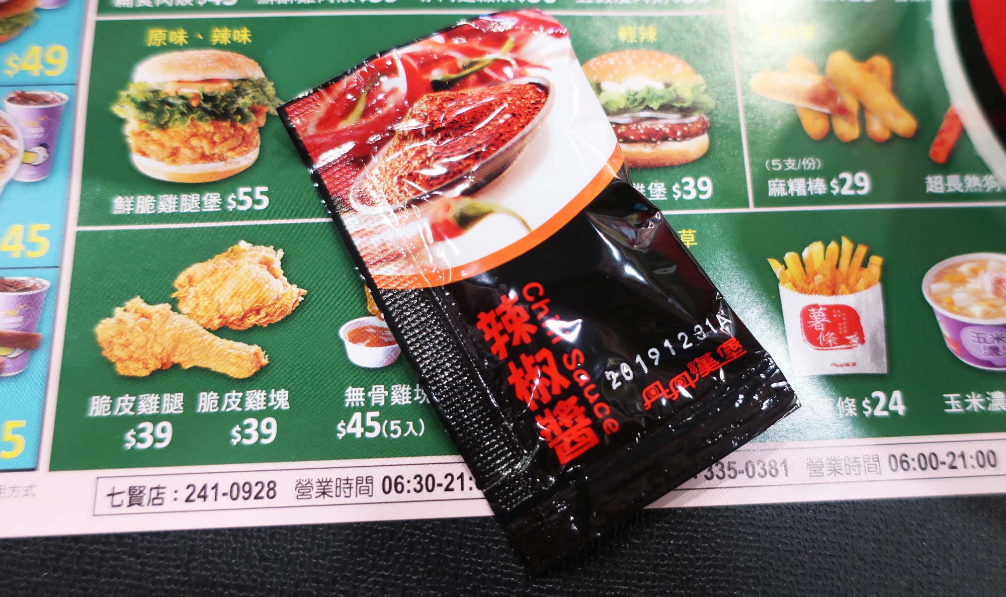 It even comes with a little packet of chili sauce; a nice touch.