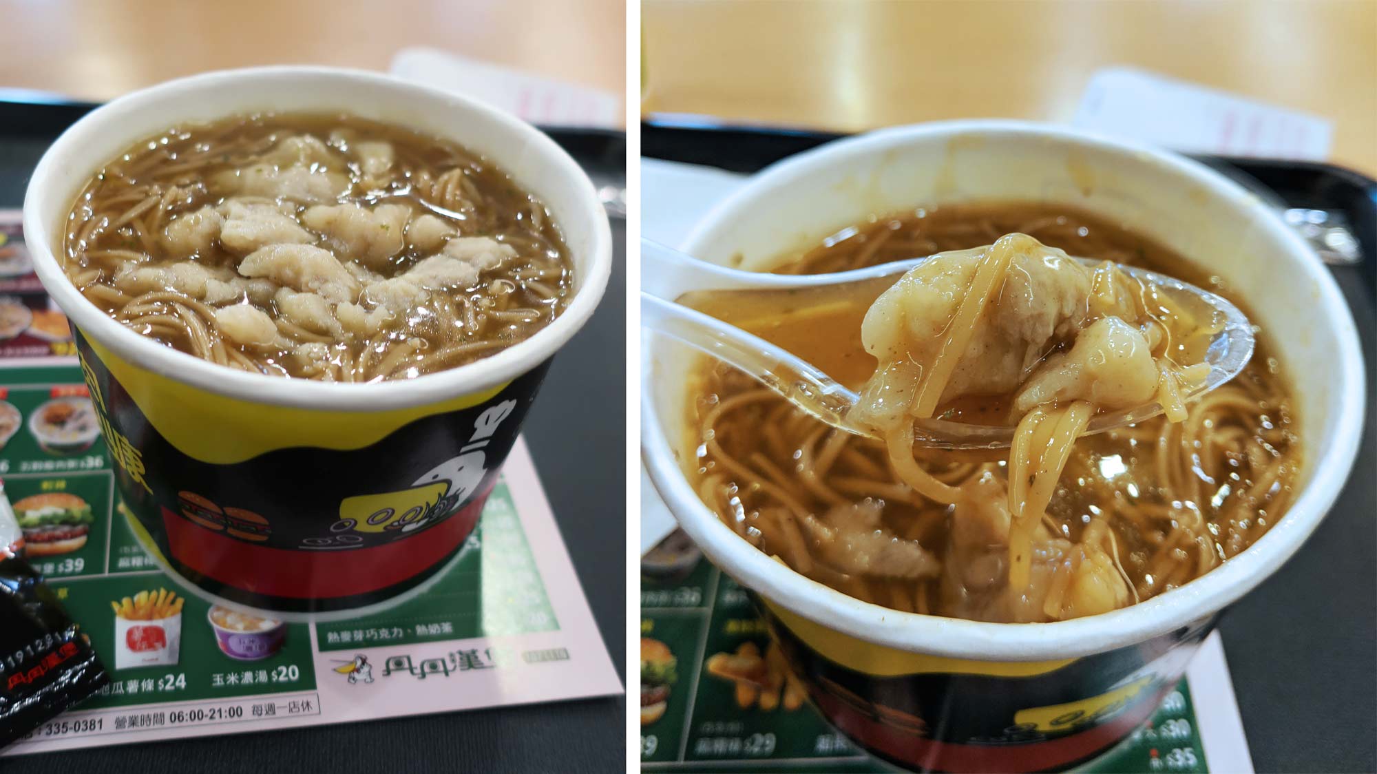 Their menu mostly features fried chicken and fried chicken sandwiches, along with stuff like noodle soup and rice porridge. I got a combo that came with a fried chicken sandwich and a side of noodle soup.