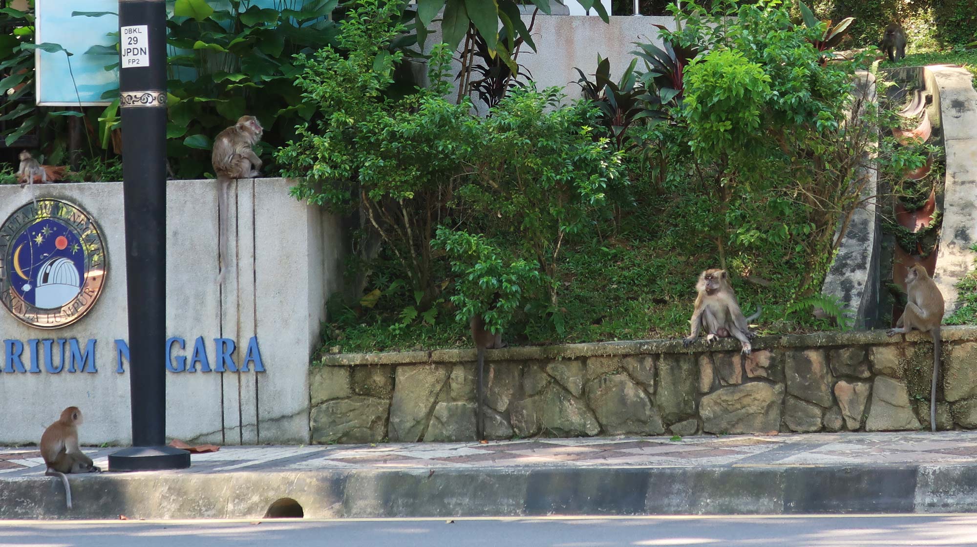If you look at a map of Kuala Lumpur, you’ll notice a huge green area right in the middle of the city. This area features several museums, a bunch of parks, and more. I was checking out a few museums in the area, and all of a sudden: monkeys.