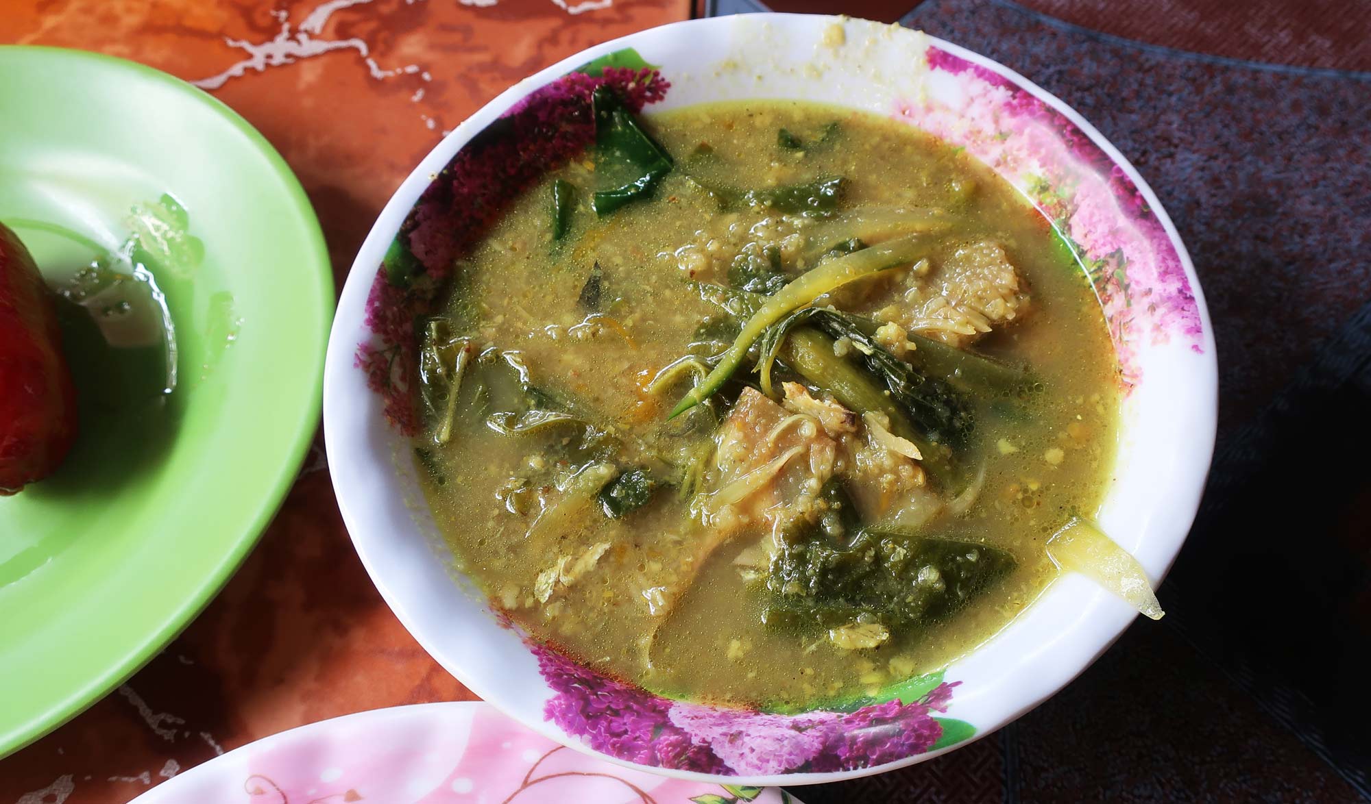 The stew/soup was some kind of curry with greens and chunks of fish. It was way too mild, with zero spice and a muted flavour — it wasn’t unpleasant, but wasn’t particularly memorable, either. Normally this would be fixable with some chili sauce, but if there was any at the table, I didn’t see it.