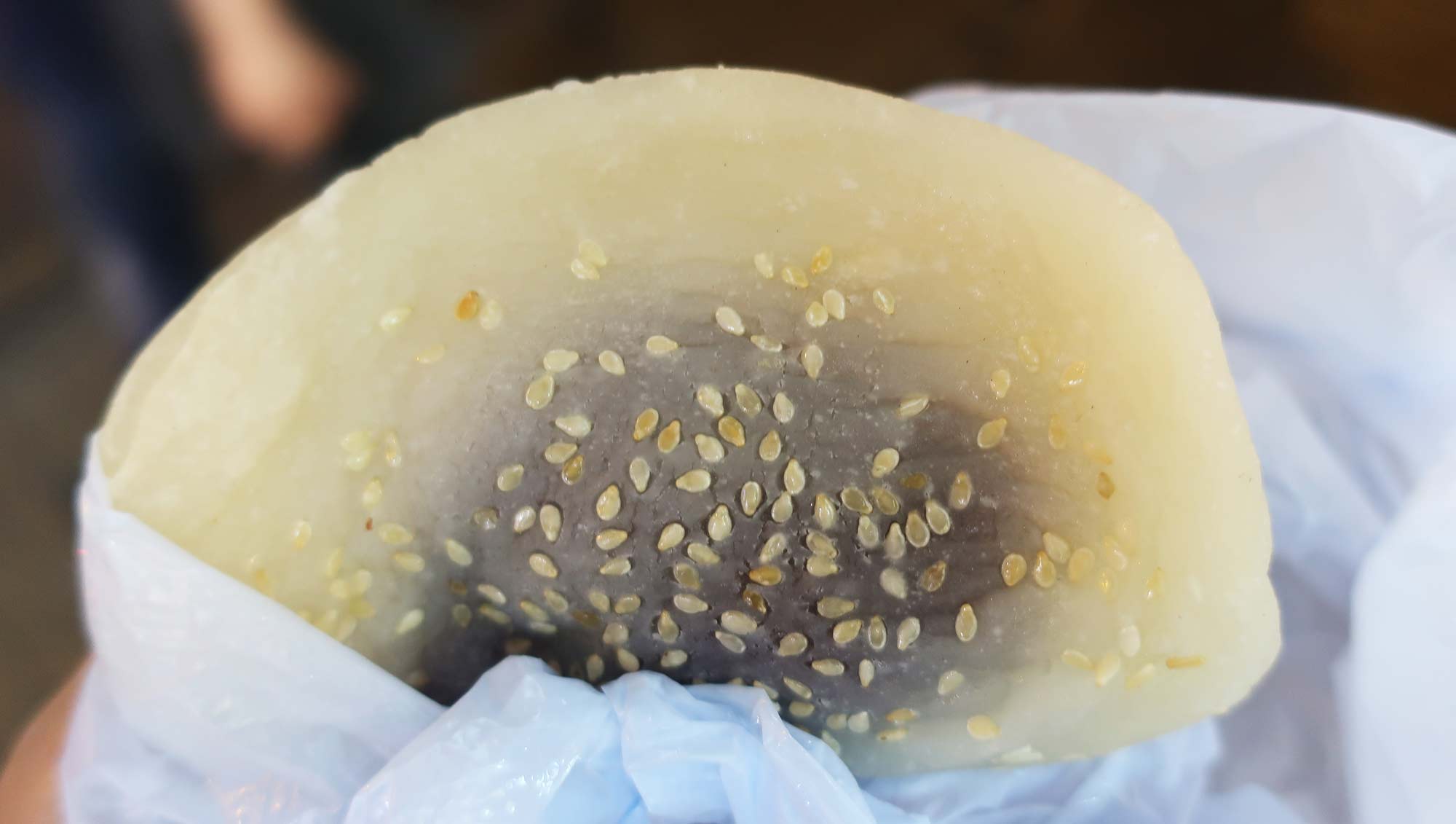 I went back a bit later and tried this pancake-like pastry that’s filled with red bean, and yeah, that was quite good as well. It had a super chewy, mochi-like texture and a decent amount of sweet red bean inside.