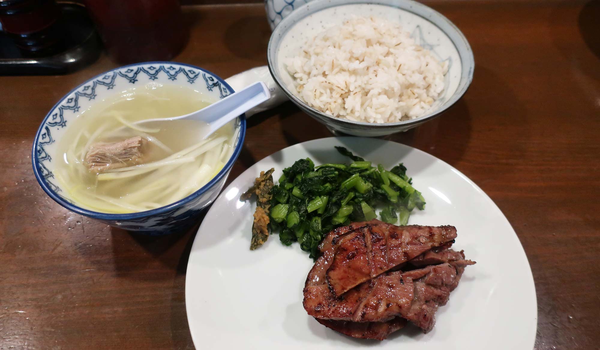 The barley rice is rice with barley in it.  It is what it is.  Both it and the soup are satisfying, but the gyudan is pretty special.