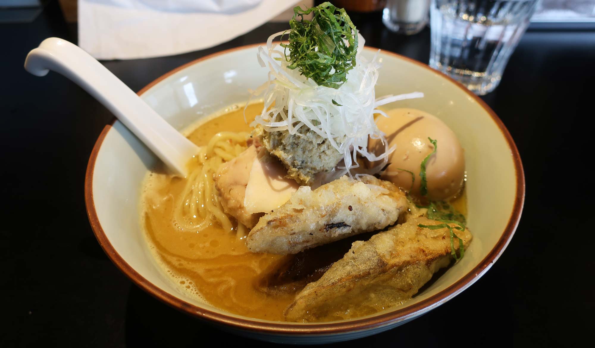 It’s an impressive looking bowl of ramen, with the most unique addition being the scoop of scallop paste on top.