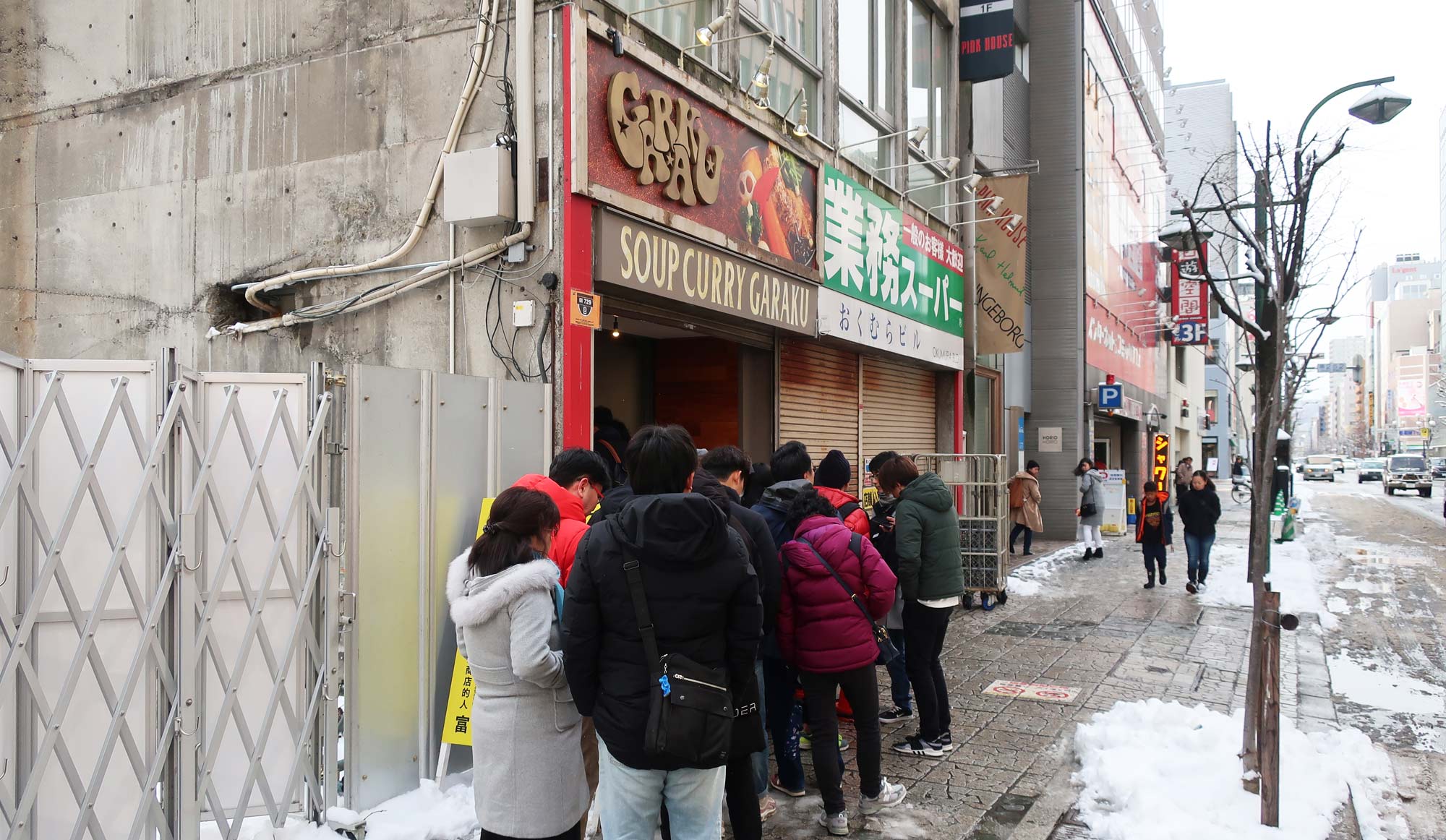 There are dozens of places in Sapporo where you can try a bowl for yourself, but one of the most popular is Soup Curry Garaku. And it is very popular; I showed up at around noon on a chilly Saturday, and there was a serious line-up. It took about an hour.