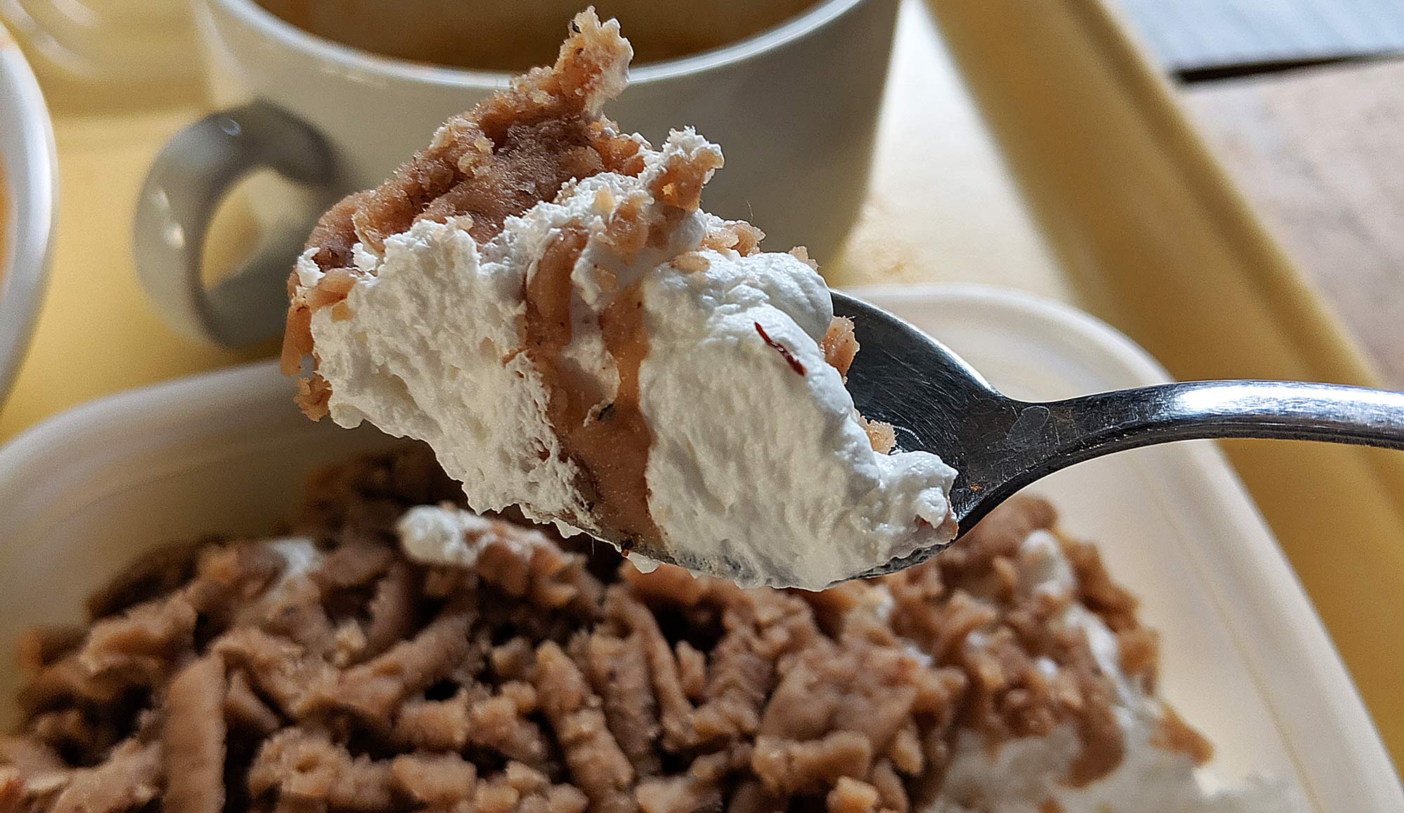 The dessert wasn’t much better. I had the gesztenyepüré — sweetened chestnut puree served with cream. This should have been amazing (it was actually quite similar to the mont blanc I tried in Japan, which I loved), but the chestnut puree was way too in-your-face boozy, and the cream was some kind of unpleasant Cool Whip-esque concoction.
