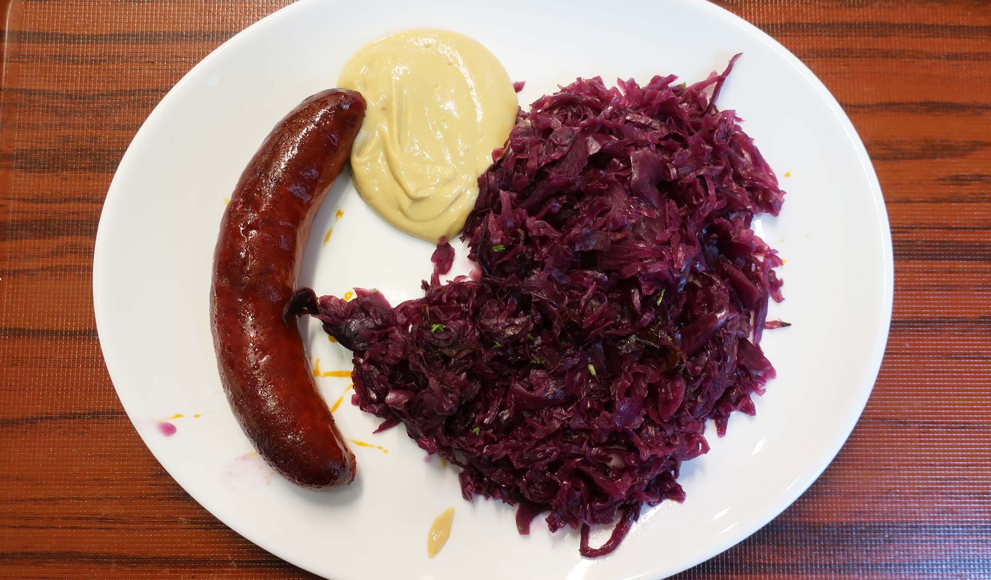 It comes with a healthy dollop of mustard and your choice of side; I went with the cabbage.