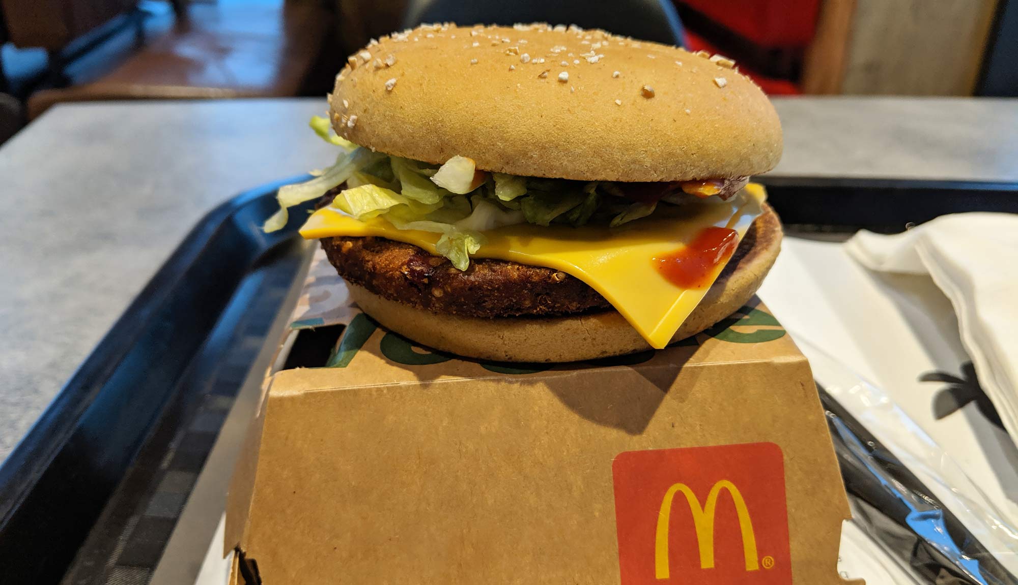 The whole wheat bun basically tastes like a regular McDonald’s bun, only slightly less sweet.