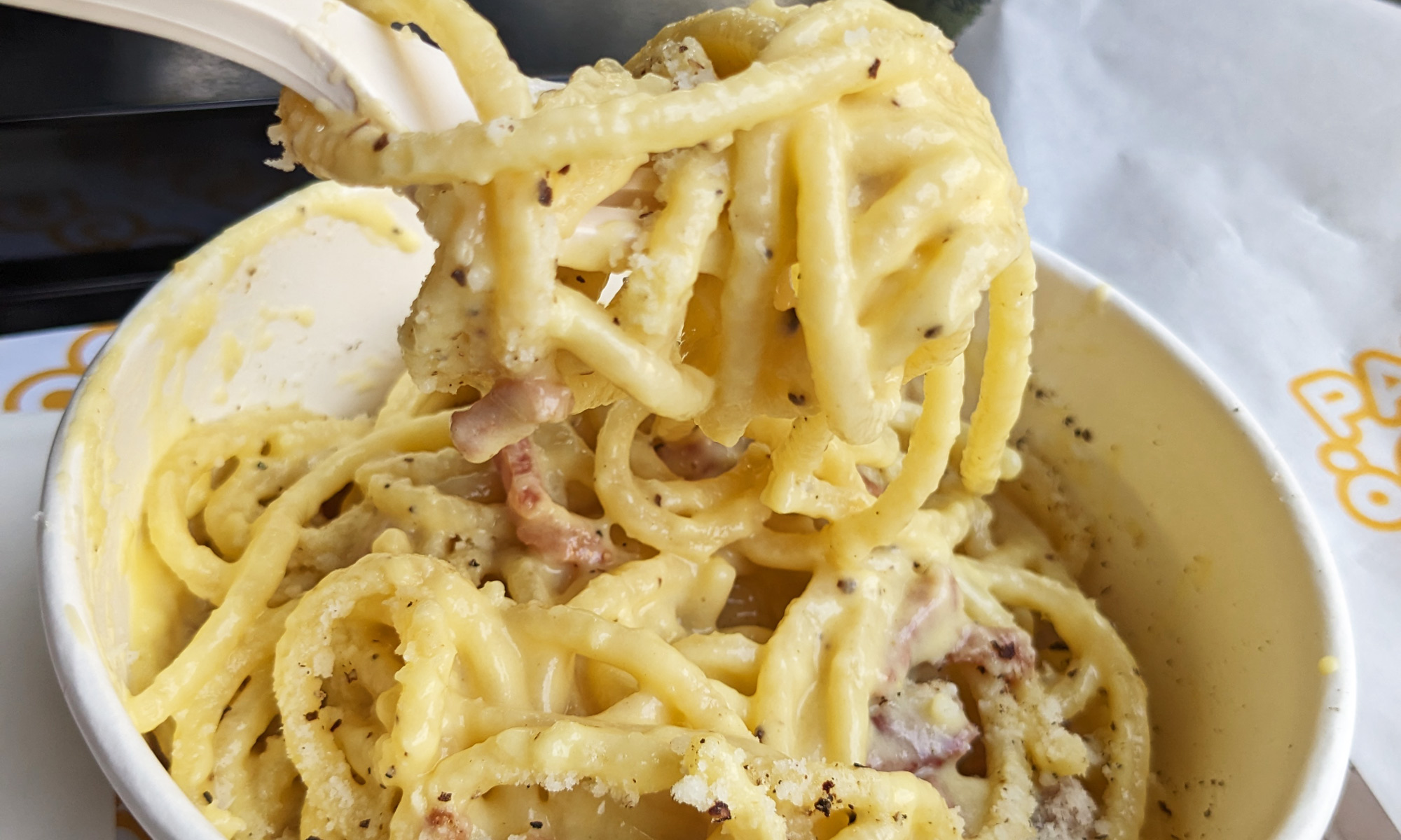 Pasta a Gogo serves a handful of pasta dishes that they make fresh — it’s mostly a take-out joint, though they do have a couple of tables outside. The woman behind the counter spoke English fluently, so I asked her what her favourite was, and she answered “carbonara” without even a millisecond of hesitation. So that makes ordering quite easy; carbonara it is! And yeah, she’s not wrong to be enthusiastic about it; it’s ultra-rich and creamy, and the crispy pieces of guanciale are salty, porky, and satisfying.
