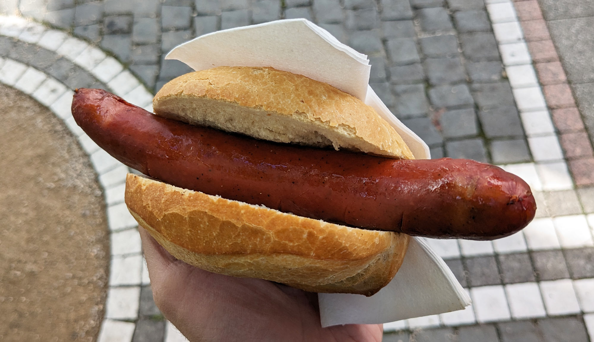 If you’re in Frankfurt, you’ve pretty much got to get at least one frankfurter. I’m pretty sure that’s the law? I got this particular one from Bauernmarkt Konstablerwache, which is a great farmer’s market in the middle of the city with a whole bunch of different prepared foods and pastries you can try. The sausage was, not surprisingly, very tasty; it was meaty, nicely spiced, and had a great snappy casing. It even had a very mild kick to it, which was unexpected but thoroughly delightful. This particular vendor didn’t have mustard or any other condiments available, and I was worried that the sausage would be too plain, but it was more than flavourful enough to stand up on its own — no toppings needed.